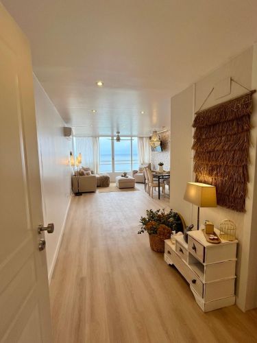This beautiful beachfront apartment with spectacular views and impeccable decor is available for rent. It's a very welcoming and bright apartment with a warm and balanced atmosphere where every detail has been carefully considered.