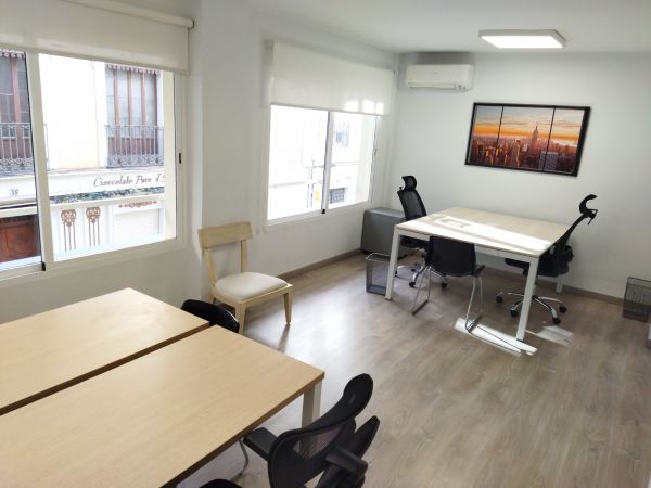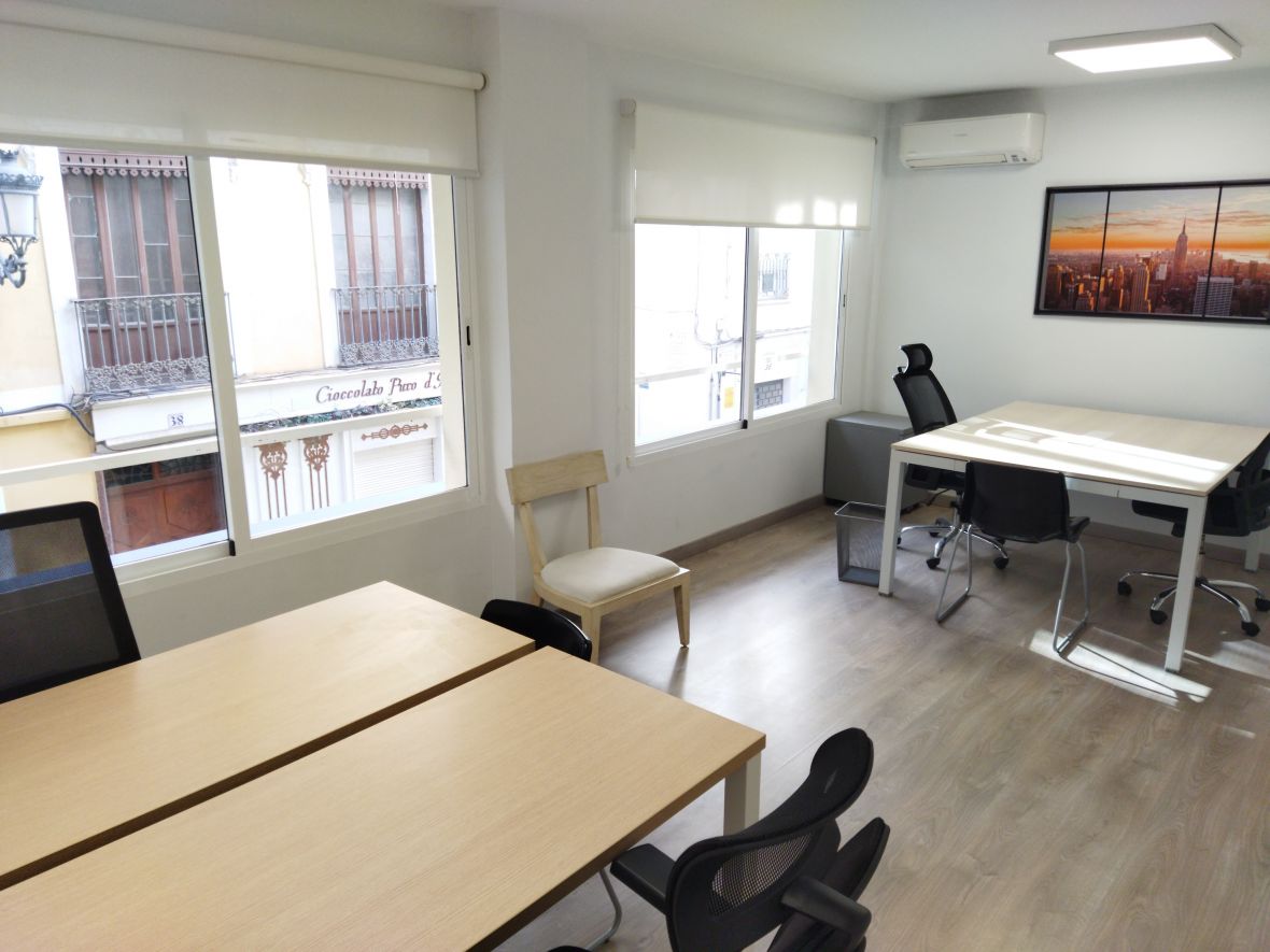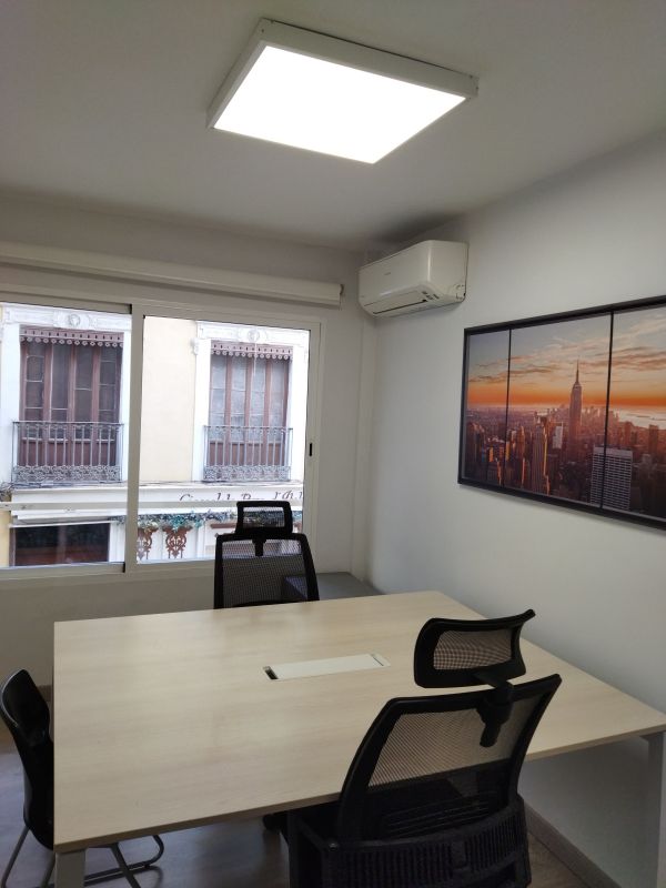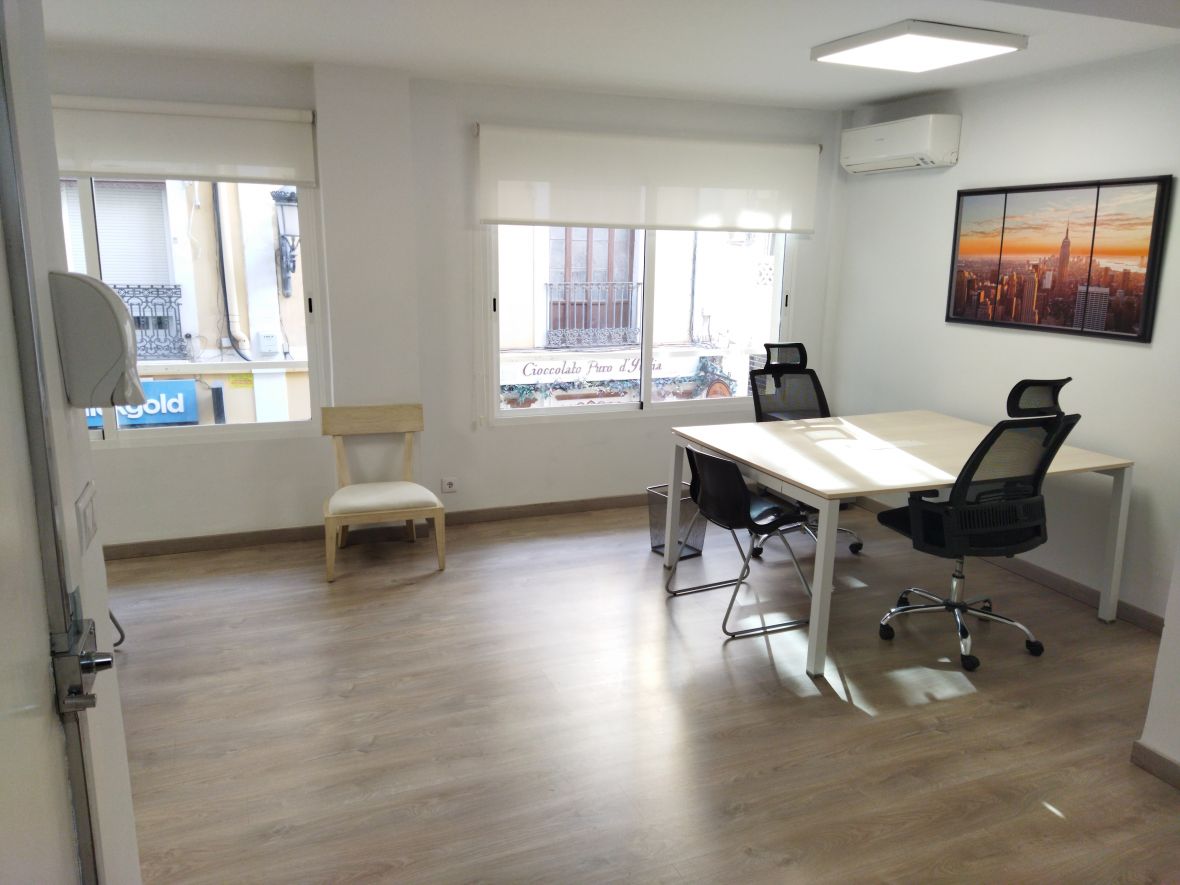 Está dividida en 5 estancias: la primera estancia con un gran ventanal de 7 metros con vistas a la calle San Francisco, una sala de reuniones, cocina/office y otro despacho también con ventanal que da a la calle principal y un aseo.